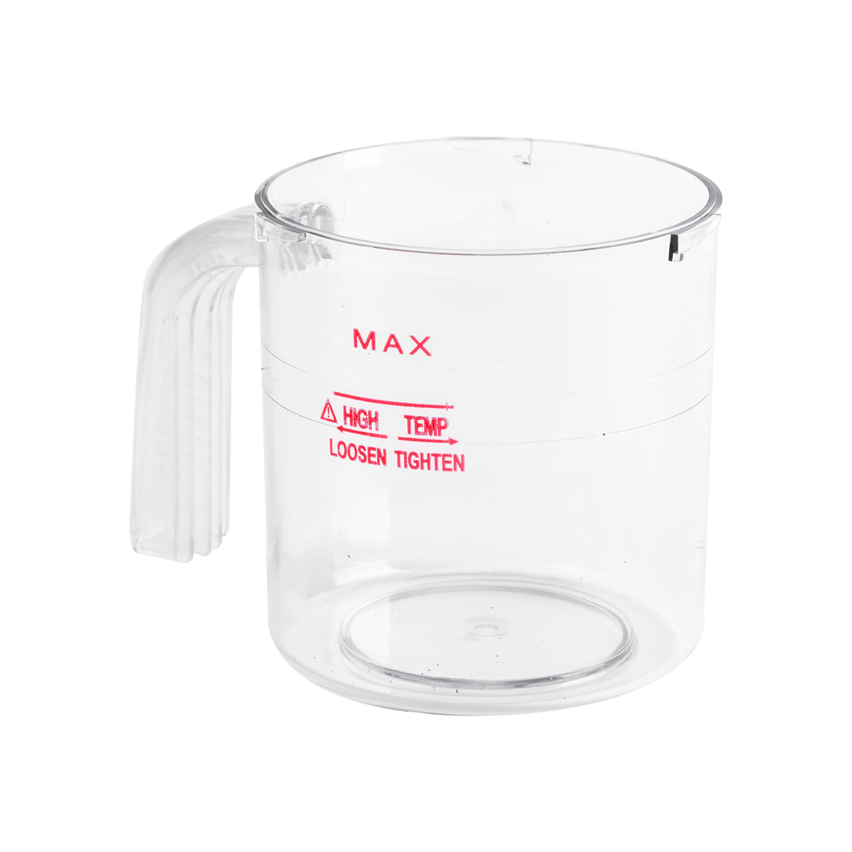 Replacement container made of transparent plastic, resistant to high temperatures. The glass has maximum water level markings for safe use. The lightweight design and smooth surface ensure easy cleaning. The replacement water container with handle has a diameter of +/- 9 cm and is suitable for Giovanni F-17 vapozones.