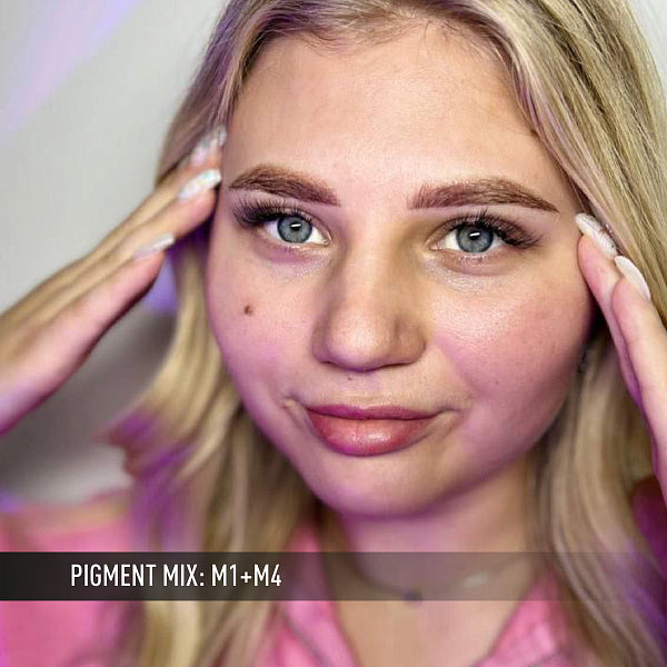 M1-Dark Blonde offers a balanced, natural pigment with a yellow-green base accented by subtle red undertones, perfect for enhancing blonde and dark blonde eyebrows. -