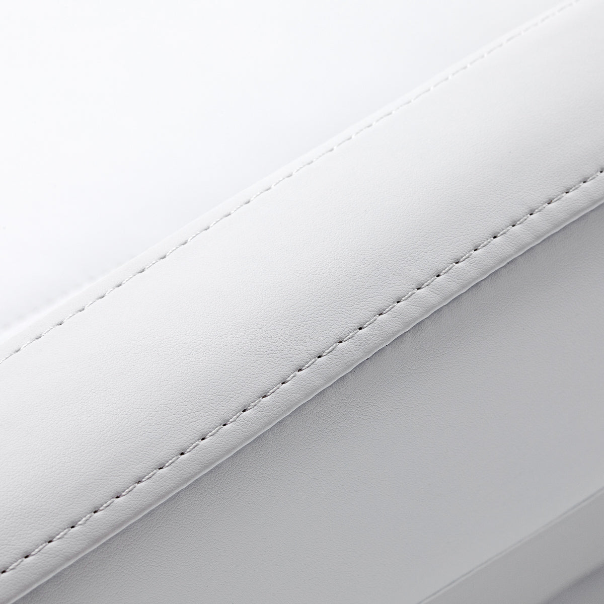 The solid construction of the chair ensures stability and durability during daily use. The seat, filled with foam of the appropriately selected hardness, guarantees comfort even during long procedures. The upholstery made of high-quality, pleasant-to-the-touch imitation leather in shades of white gives the chair a professional look, while being moisture-resistant and easy to clean. The durable base ensures stability, and the precise finishes emphasize the modern character of the chair and enhance seat ergonomics.