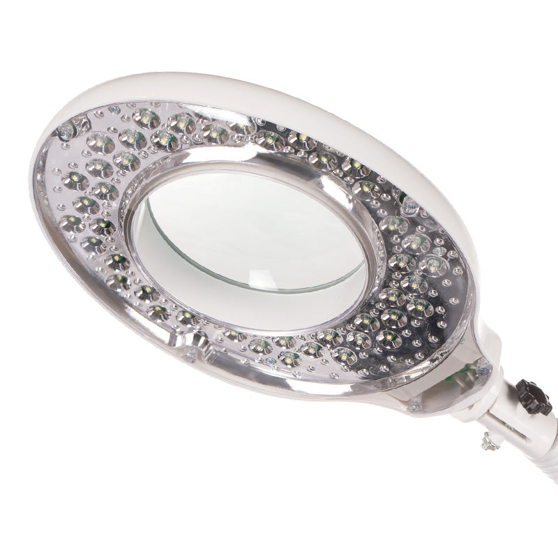 Easy to slide and adjust lamp magnifier, high-quality refractive glass magnifying lens and built-in illumination system enabling optimal skin diagnostics. The lamp head is mounted on an arm for easy positioning at a specified distance and height. Facilitates work during cosmetic procedures.