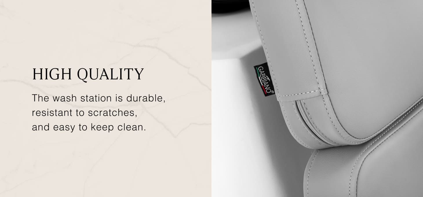 The elegant Gabbiano Porto-BM hairdressing hair wash unit was designed to provide practical equipment for a professional hairdressing salon. It facilitates basic hair treatments, such as washing, coloring and regeneration. The integrated design ensures comfort of use for both hairdressers and clients, and the visually interesting chair gives the interior a unique style.