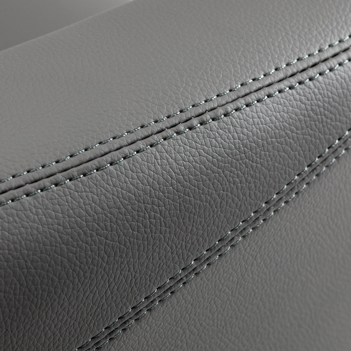 The chair is filled with foam, which is durable and does not deform, ensuring comfortable use for a long time. The upholstery is made of pleasant-to-the-touch imitation leather with a specific structure. Thanks to the use of such material, the equipment is resistant to moisture, durable and easy to clean. The covering in shades of gray and decorative elements in gold hues give it an expression of timeless elegance. Its distinctive classic finish makes it look great in almost any space.