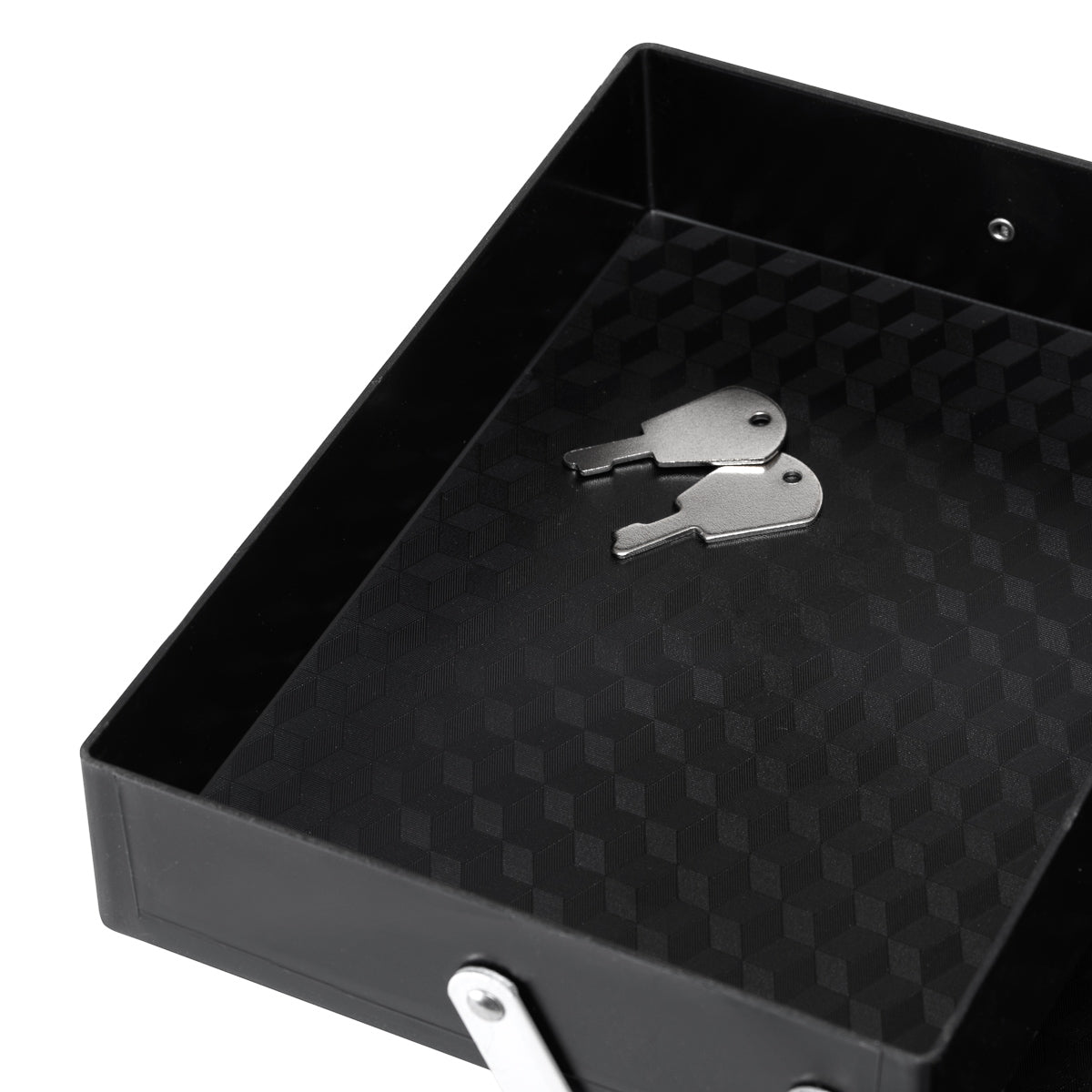 The modern design with smooth pink-finished walls and metallic accents adds a touch of elegance. The handle makes transport easier, which is especially important for mobile stylists. Made from durable, damage-resistant materials, it ensures everyday comfort of use. A sturdy latch closure with a key keeps the contents protected, while the lightweight and durable structure makes the case easy to carry.