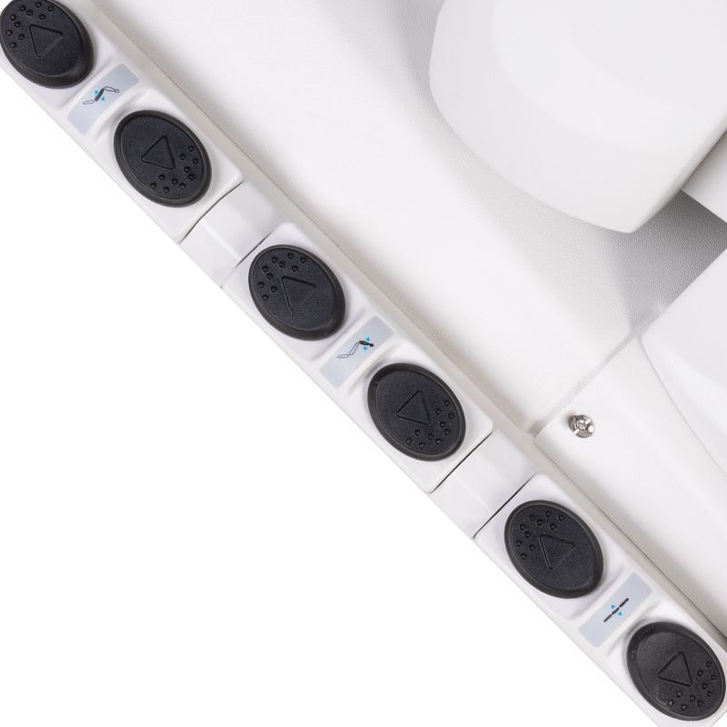 A unique electric cosmetic chair, ideally suited for beauty salons and SPA salons. Thanks to independent motors, it allows you to adjust the chair in 4 planes by means of a remote control and foot switches, giving the possibility of comfortable face and body treatments. By using the remote control, we can use the programmed settings and start the HOT function, i.e. heating. The armchair uses perforated upholstery, unheard of in other armchairs, and colored LED illumination of the base.