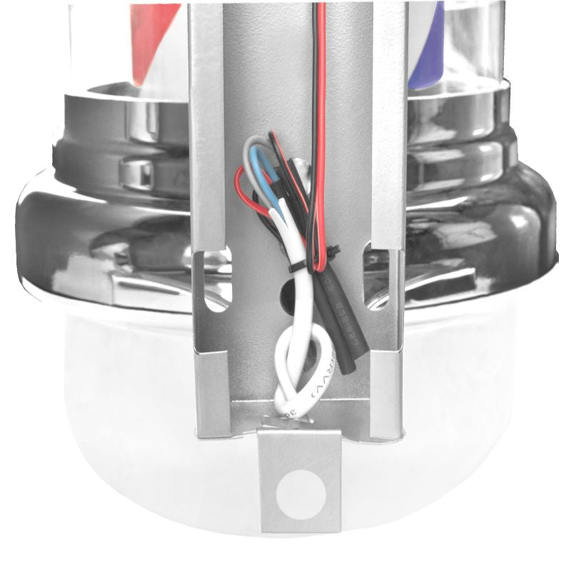 An eye-catching illuminated plafond, equipped with a rotating cylinder, is an excellent advertisement for a barbershop. The distinctive design, with rotating elements in red, white and blue, creates a unique, internationally understood business card of the barbershop. Using the wired remote control, you can turn on both the lighting and the rotation of the plafond.