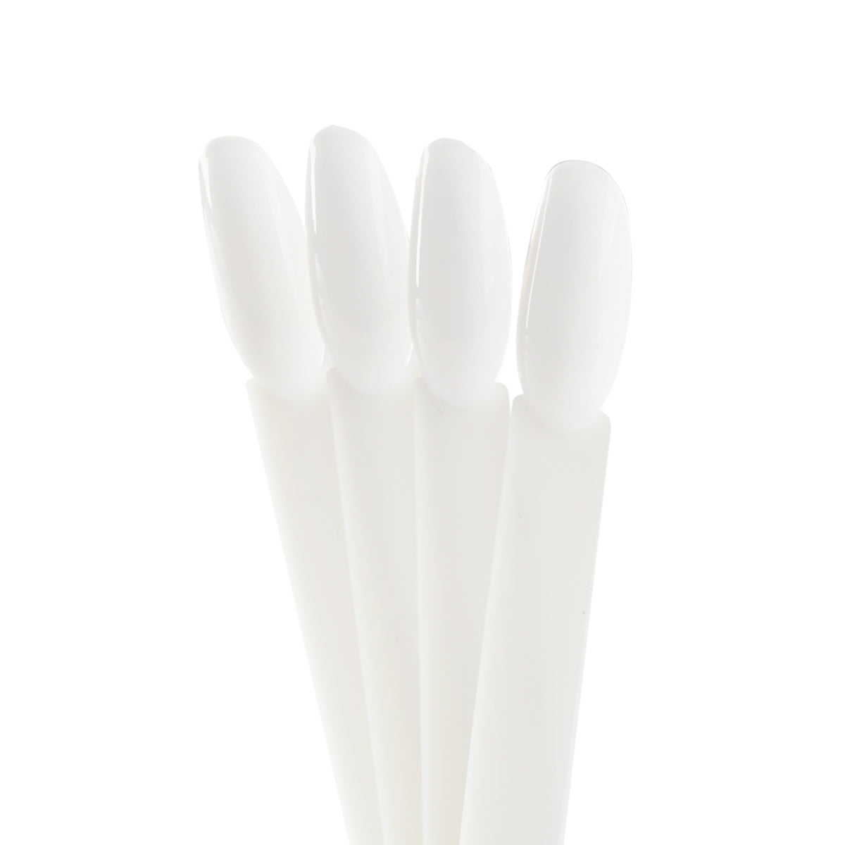 The nail stencil in a milky color allows you to aesthetically present all colors of classic and hybrid varnishes or gels. It consists of 50 individual tips of oval shape and size corresponding to real nails. It is fastened with a practical, detachable wheel, which makes it easy to store the whole thing. Each tip is made of durable plastic.