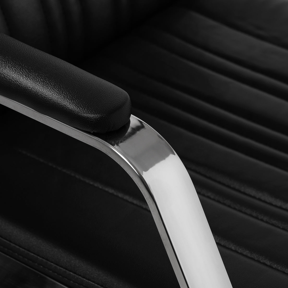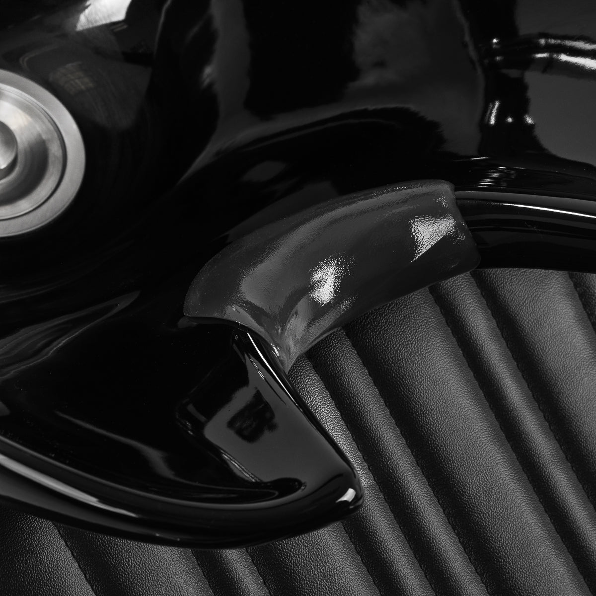 The profiled seating, filled with durable foam, ensures comfort, while the upholstered armrests facilitate proper positioning of the customer's shoulders. The backrest placed at an optimal angle promotes excellent support for the spine. The synthetic leather cover in shades of black guarantees long-term durability and easy cleaning. Stylish stitching on the upholstery gives the hair wash a character inspired by automotive design, emphasizing its impressive visual appearance. It comes with complete fittings in chrome and black tones, including a faucet, shower handset, and dedicated hoses to ensure a complete set of tools for the job.
