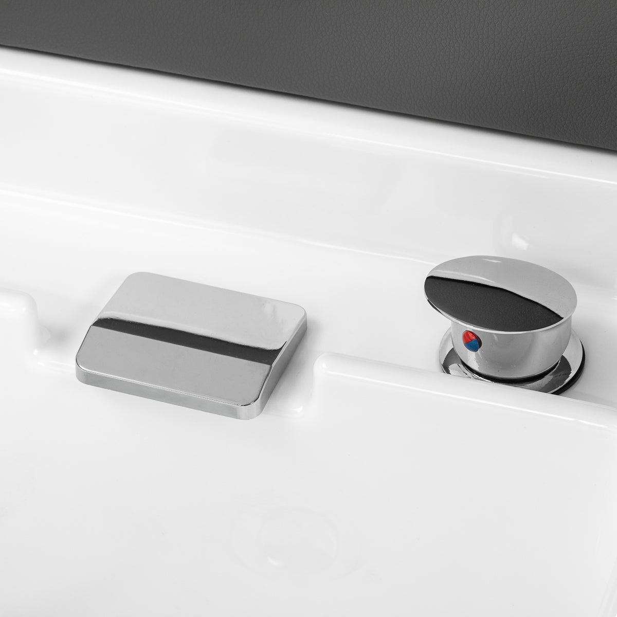 A deep ceramic bowl in shades of white effectively reduces splashing of water and products used during treatments, ensuring cleanliness and comfort of work. Made of durable material, the bowl is resistant to discolouration, scratches and damage, and its smooth surface makes cleaning exceptionally easy. Its distinctive profile not only facilitates access for the person performing the service but also gives the wash unit an elegant and modern look. The combination of aesthetics and functionality elevates the standard of any professional space.