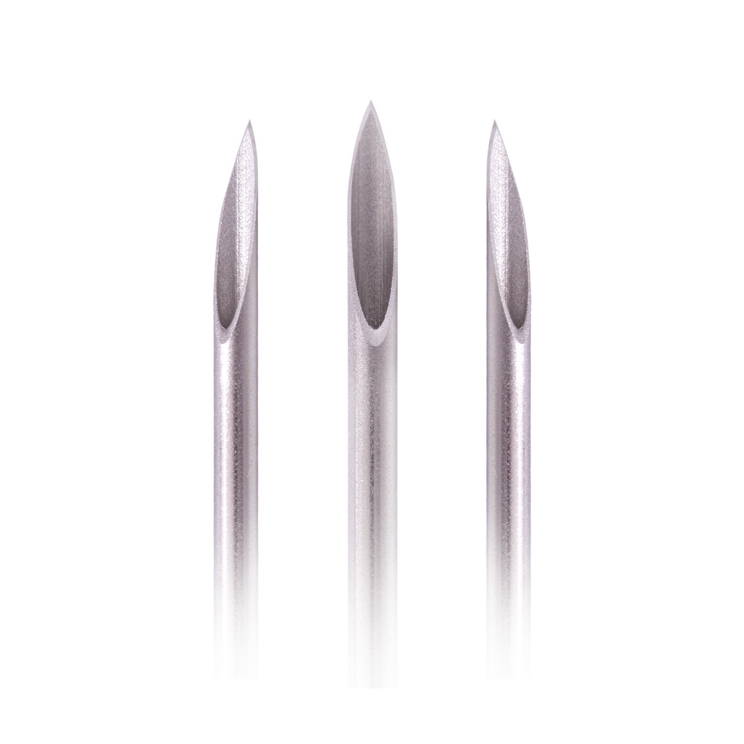 The straight hollow needle design with an ultra-sharp tip supports smooth penetration and precise placement, delivering clean, consistent results across a wide range of piercing techniques. With a standard 48 mm length, these needles offer reliable performance for professional piercing studios that demand precision and consistency.