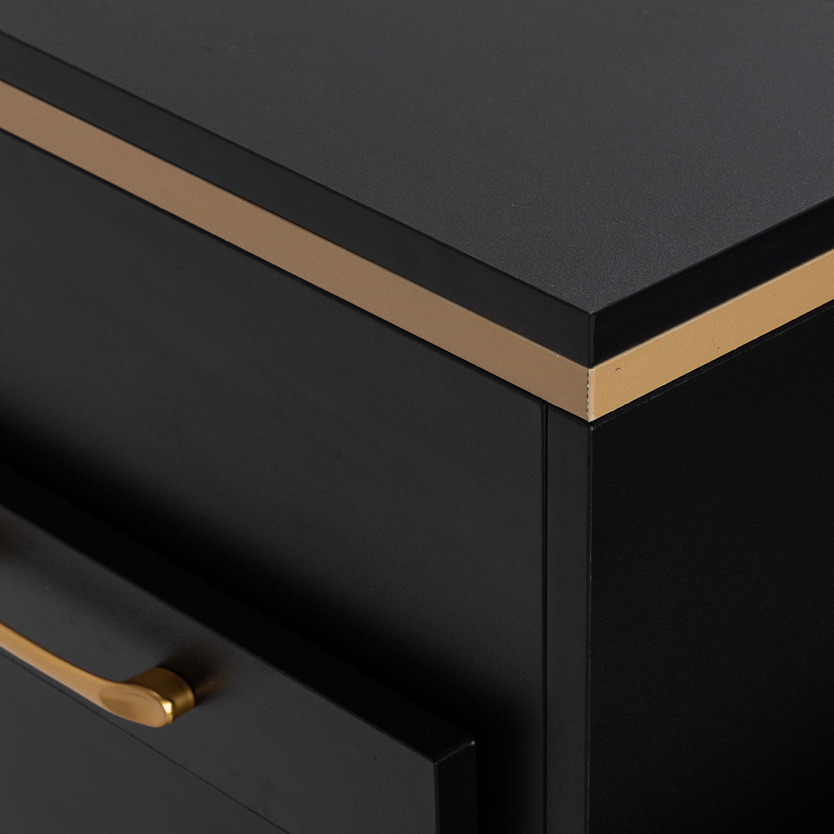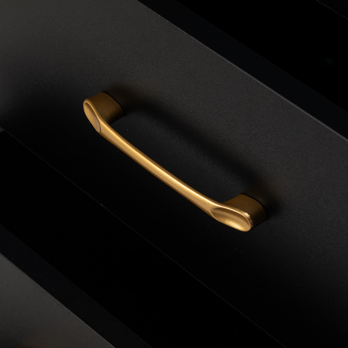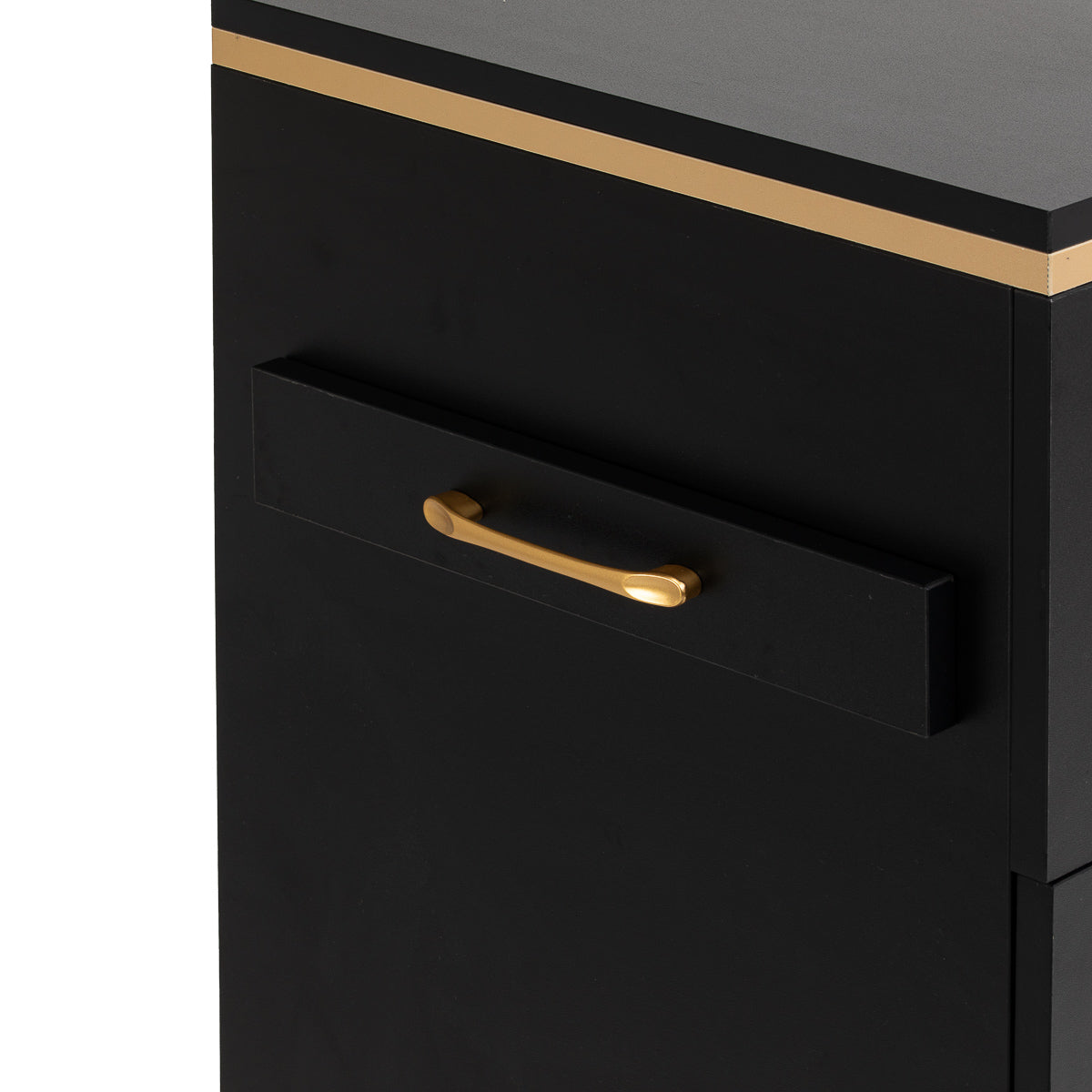 The combination of classic black and gold gives the helper a modern, prestigious character, which fits perfectly into both minimalist and more expressive arrangements. The solid construction ensures stability, while the smooth surface makes it easy to keep the furniture clean. The gold handles not only emphasise the elegant design, but also ensure convenient opening of each drawer. It is a practical solution for a hairdressing salon, where order, convenient access to tools and aesthetics of the workstation matter.