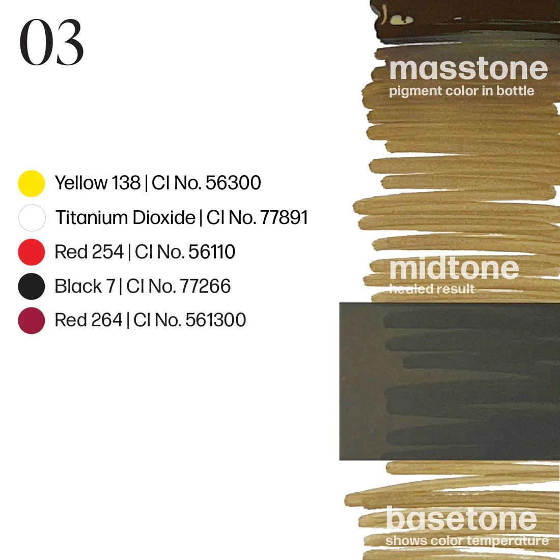 - 02: A darker, neutral shade ideal for clients with blonde hair and warmer or neutral undertones, or cool-toned skin for a cooler effect post-healing.