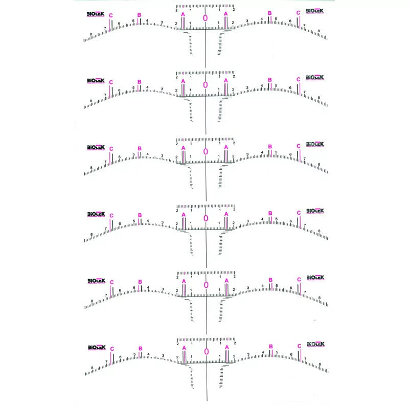 Perfect for both the preparatory drawing phase and as a final check to verify symmetry, Biotek Adhesive Eyebrow Rulers ensure every brow shape is balanced and perfectly aligned. Their clear, easy-to-read markings make it simple to measure, outline, and double-check your design, delivering professional results with confidence and consistency.