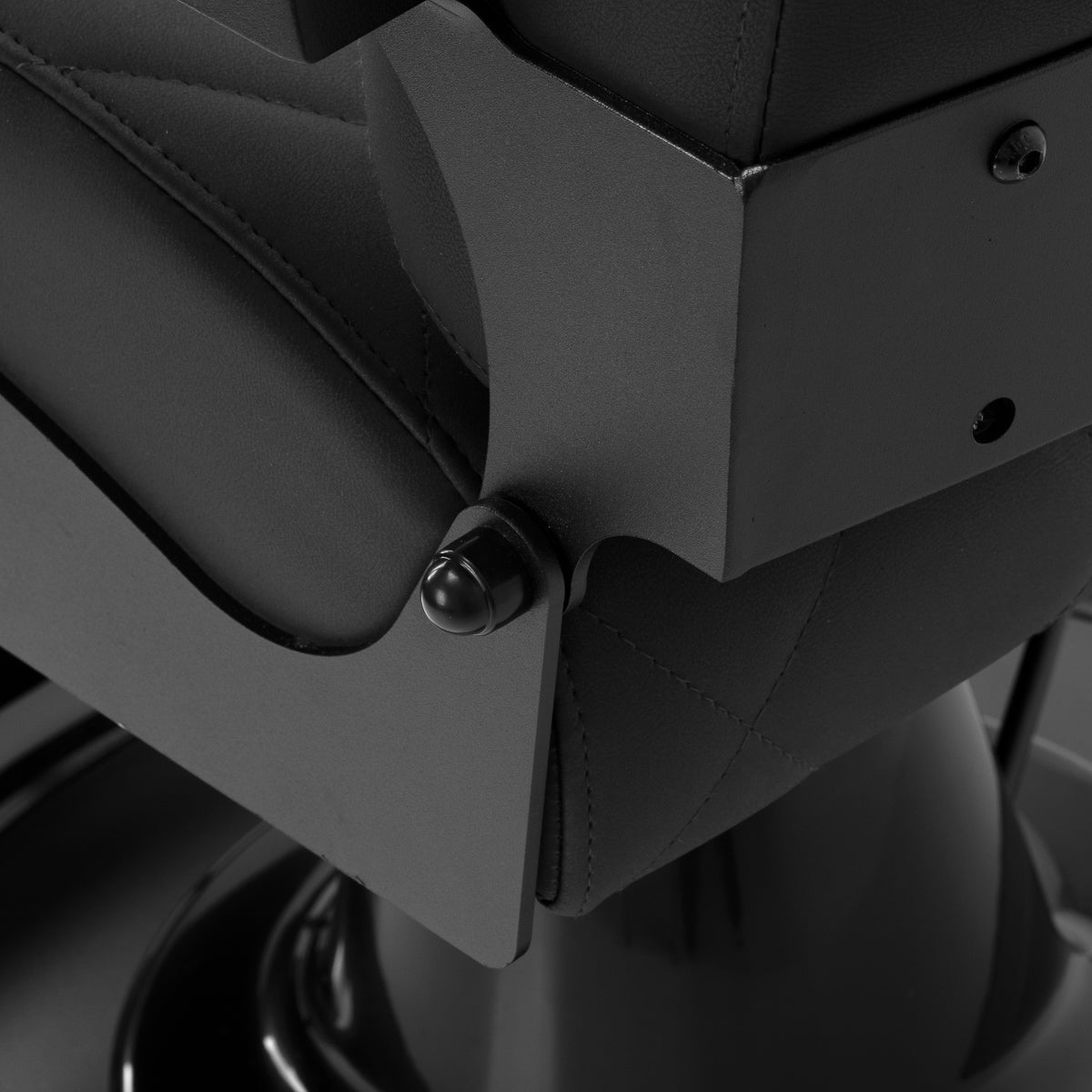 The stable construction ensures safety and long-lasting durability. The seat, filled with deformation-resistant foam, and upholstery made of soft, synthetic leather ensure durability and comfort. The moisture-resistant materials are not only durable but also easy to clean. The black upholstery combined with a black frame gives the chair a modern and professional look, while its minimalist style allows it to fit into the décor of any barbershop.