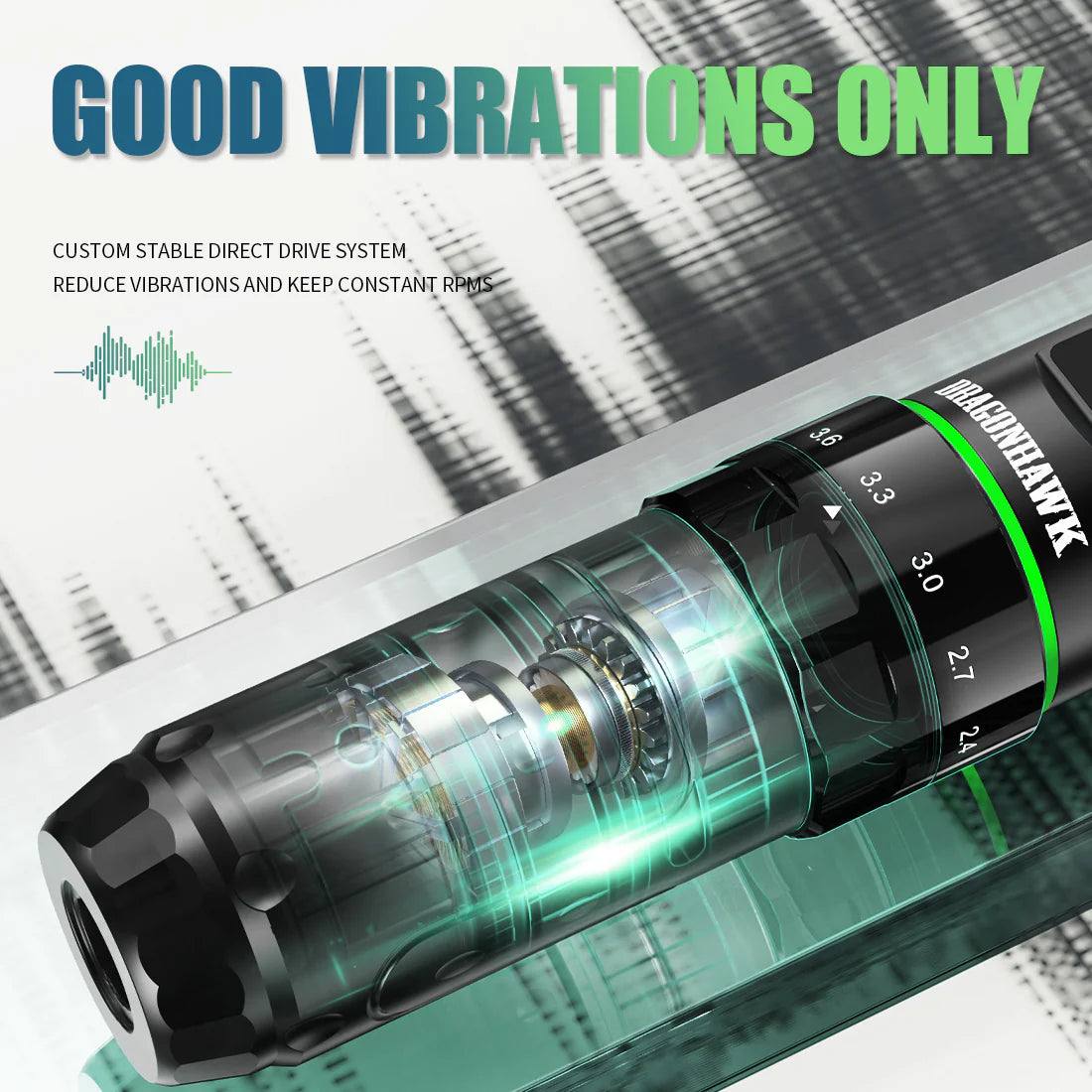 The Dragonhawk L3 Wireless Tattoo Pen delivers true stroke adaptability with 7 real stroke length settings from 2.4mm to 4.2mm, allowing artists to switch effortlessly between lining, shading, packing, and blending. Additional steel weight integrated into the grip enhances balance and stability, giving artists greater control and reduced hand fatigue during long sessions.