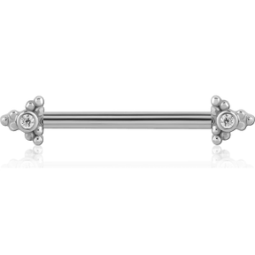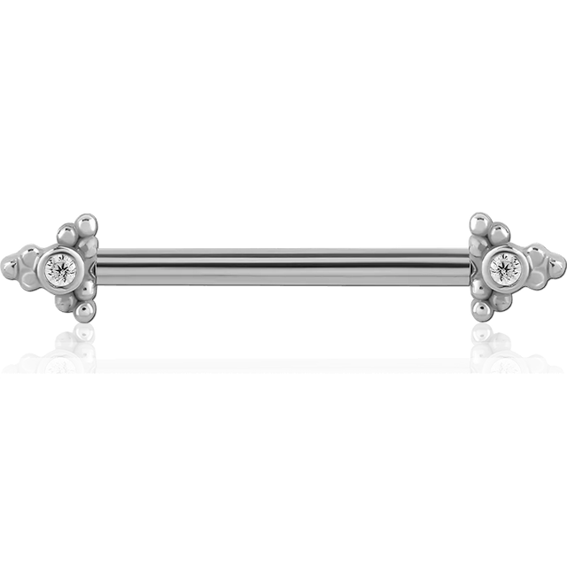 A bold arrow-inspired nipple barbell designed for clean lines, subtle crystal shine, and modern piercing style.