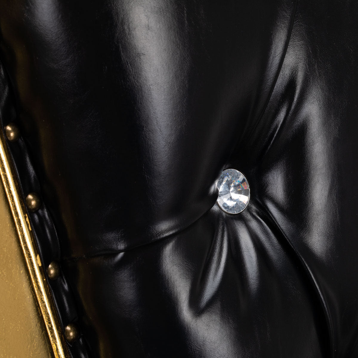 The durable base in shades of white provides stability during treatments, and its smooth surface is easy to keep clean. The chair is filled with foam and covered with pleasant to the touch imitation leather in shades of black. Thanks to the use of such material, the equipment is resistant to moisture and abrasion, and not very demanding to clean. The finish with fancy elements in shades of aged gold, quilting and decorative buttons gives it a unique expression. The spectacular Tron pedicure stand will allow you to emphasize the sophisticated character of the salon and is sure to be memorable for customers.