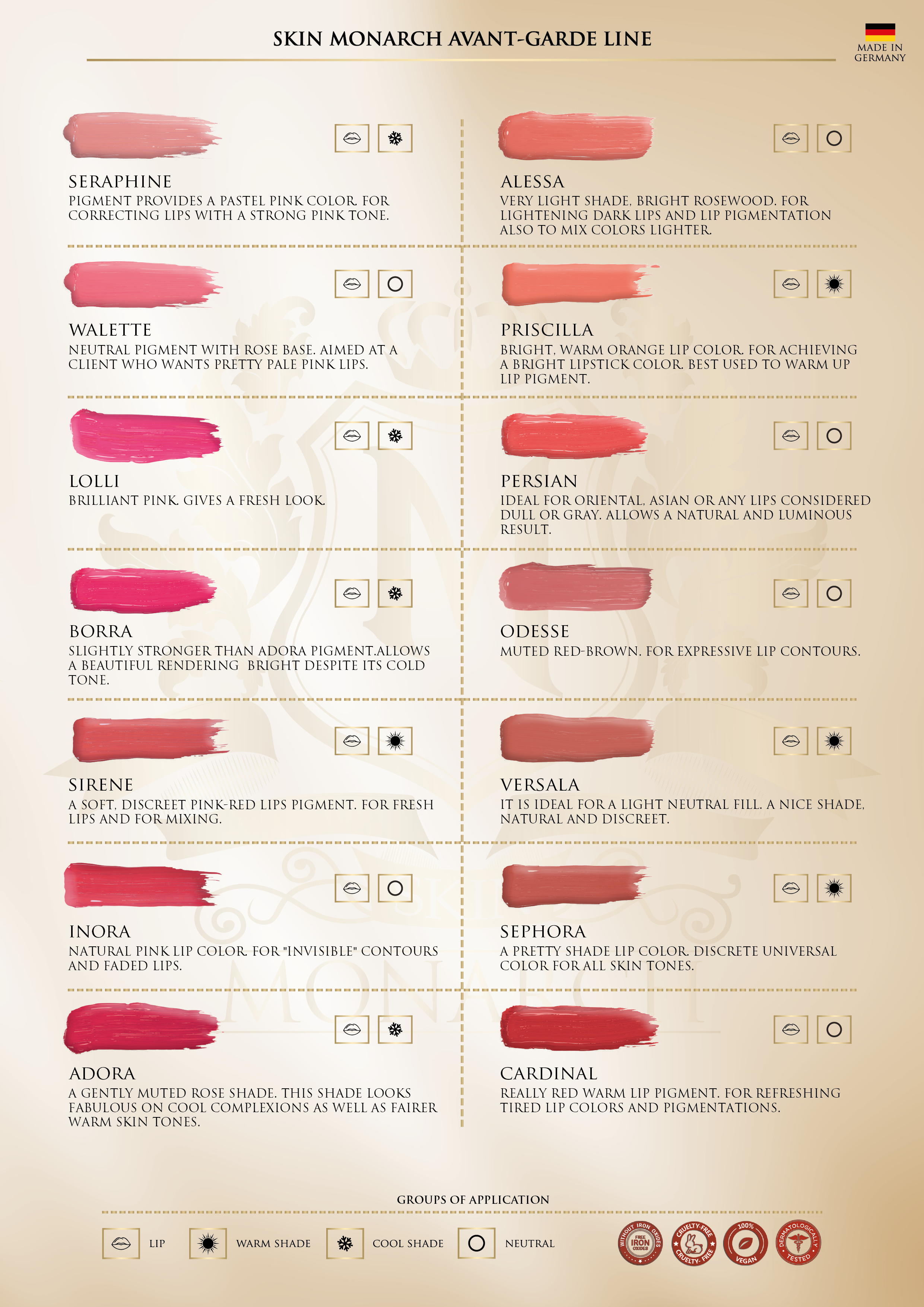 Formulated by Skin Monarch Academy, these premium Avant-Garde Line pigments are made from the world’s finest certified ingredients. Free from iron oxides and fully colour-stable, they provide exceptional performance, long-lasting colour, and even fading over time.